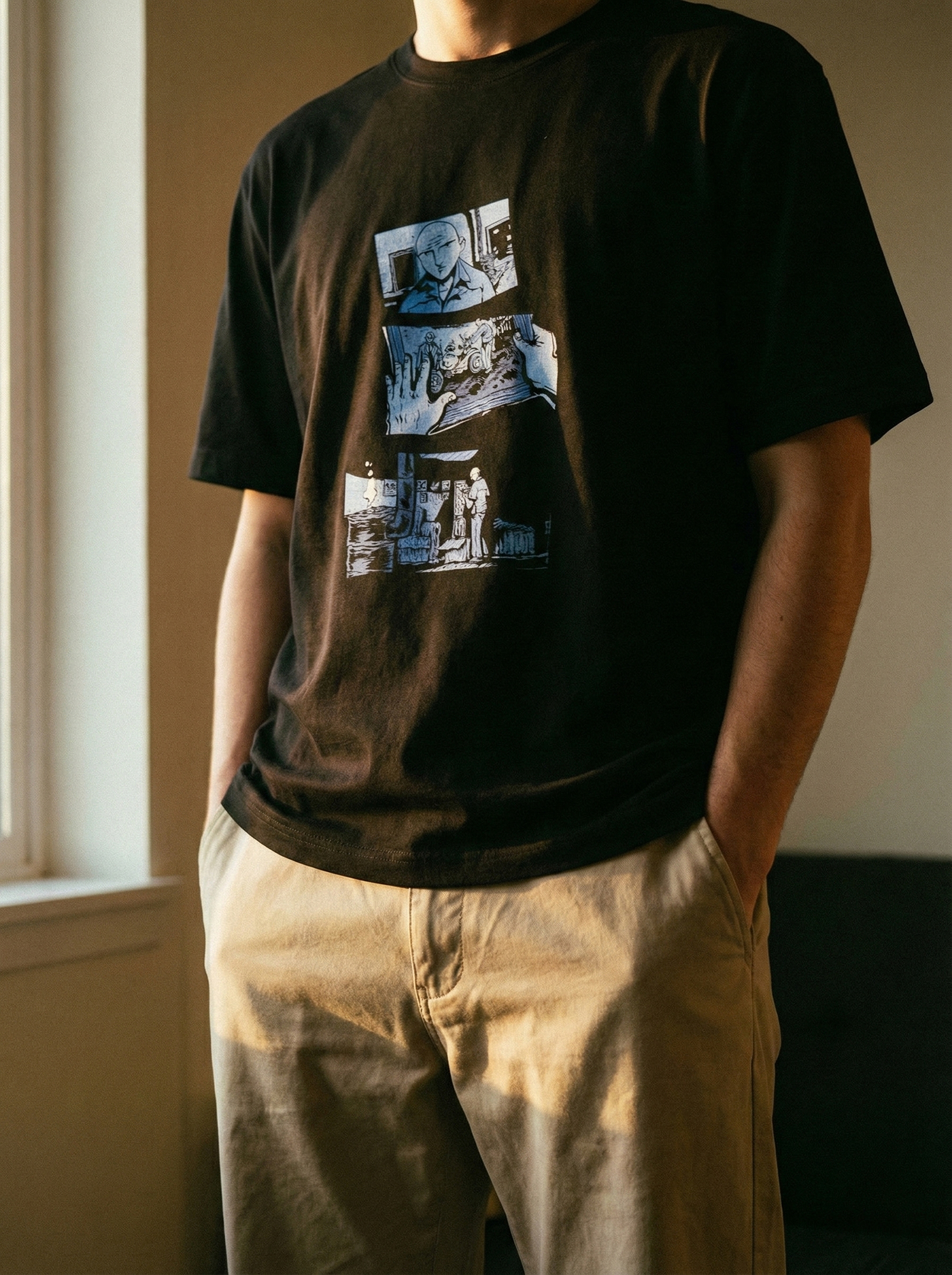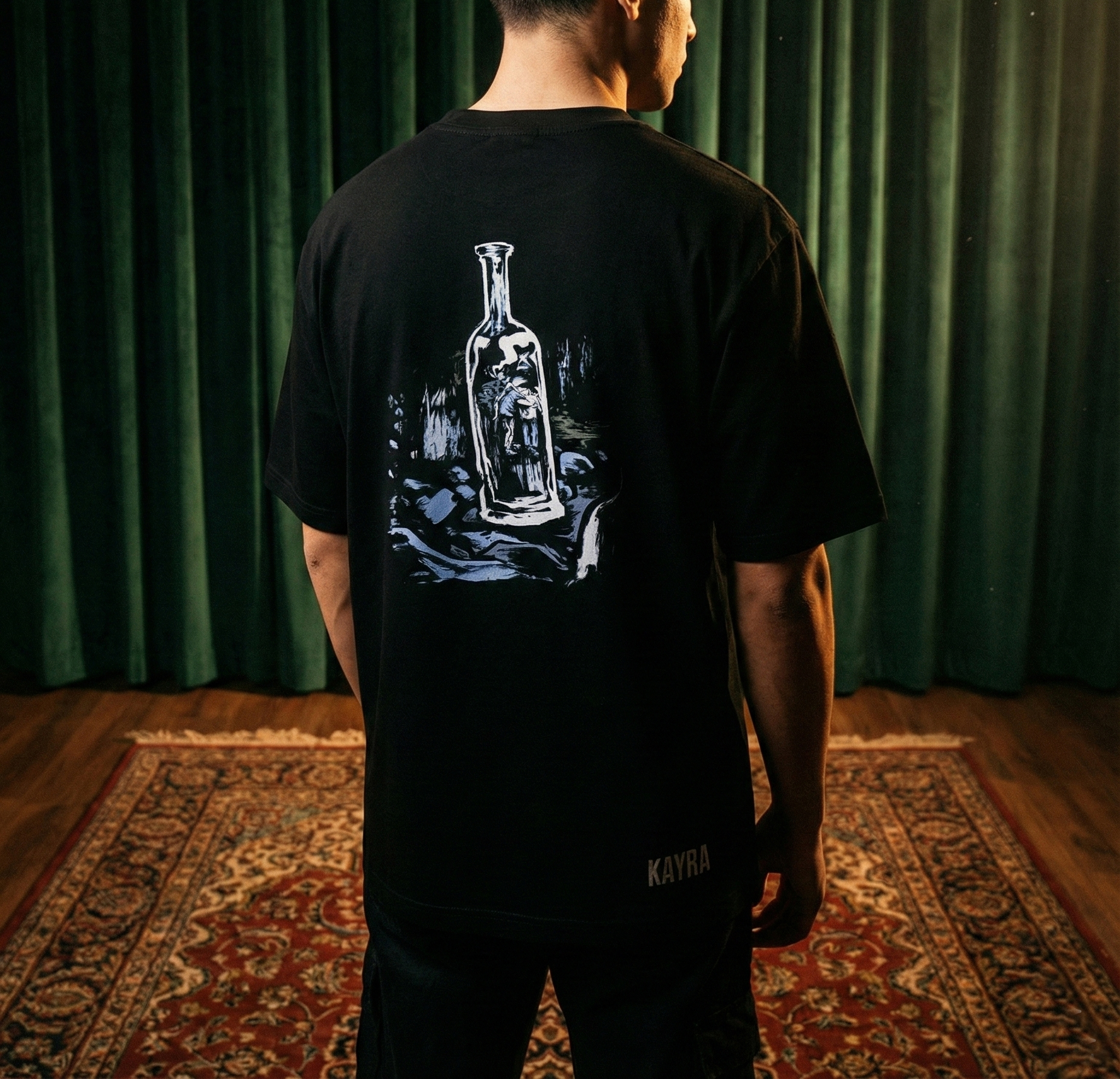 Kayra’nın Bütün Ayazların Ortasında albümünden ilhamla hazırlanan bu özel çift yönlü baskı tişört, albümün atmosferini görsel bir anlatıya dönüştürüyor. Çizer Ege Avcı tarafından albüm ruhuna özel olarak hazırlanan iki ayrı çizim, tişörtün ön ve arka yüzünde yer alarak tek parçada bütünlüklü bir hikâye sunuyor.